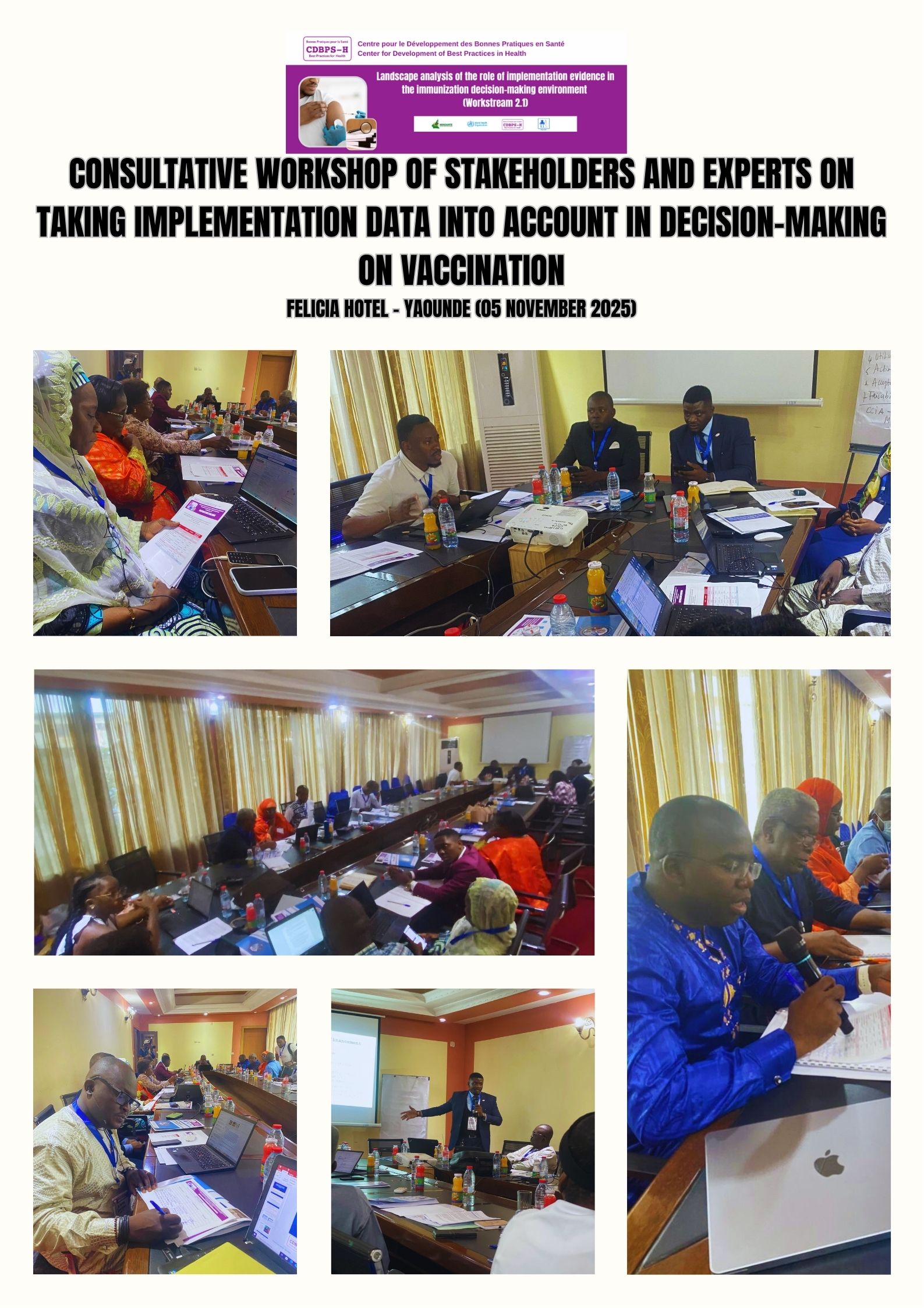 The workshop brought together a representative group of national and international stakeholders, including: the Expanded Programme on Immunisation (EPI) as the institutional authority; the Centre for the Development of Best Practices in Health (CDBPS-H), research unit and main organizer; representatives of the Ministry of Public Health, responsible for vaccination policy and planning; members of the NITAG; technical experts and researchers specializing in immunization and public health; as well as technical and financial partners. These actors were joined by participants from the community and associations involved in raising awareness and acceptance of vaccine innovations.